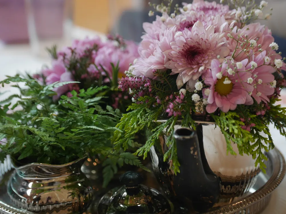 Flowers and vintage tablecloths